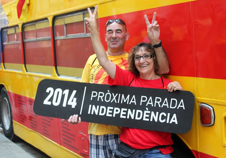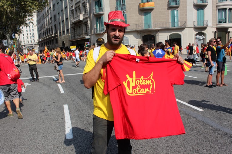 Eso es lo que quieren, fue lo que gritaron, lo que decían sus camisetas, sus pancartas. “Cataluña no es España”, «Independencia». Si bien se trataba de una concentración para presionar por una consulta ciudadana que arrojaría el deseo o no de los catalanes por independizarse de España, el 9N, que es considerado por el gobierno español como un acto anticonstitucional, y por lo tanto irrealizable, la Diada no sólo pedía urnas, exigía independencia. Fue la fiesta por la independencia de un país que no consideran sea suyo. Los rostros de la gente con el cartel “Próxima parada: Independencia 2014” reflejaban orgullo, deseo; estaban ansiosos por tomarse esa foto. No sólo pelean un derecho a que se pregunte, quieren dar el siguiente paso.