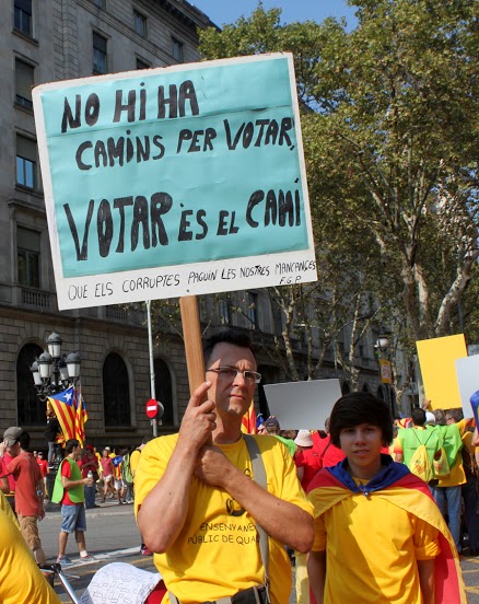 ¿Cuál es el principal motivo para la independencia? Fue la pregunta de Vice a los catalanes en esta concentración. Un 34% respondió que por razones económicas, un 30% considera que se trata de cultura o historia. ¿No será esto una buena y bien armada maniobra política que busca tener mayor control y por ende, mayor poder y riqueza para unos cuantos? Pero al mirar a mi alrededor, me parecería imposible pensar que tanta gente pudiera estar equivocada. Me quedé con esta idea unos minutos y luego recordé que Enrique Peña Nieto es presidente de México y la Gaviota primera dama, entonces volví a pensar que la lucha del poder por el poder, puede llegar muy lejos.