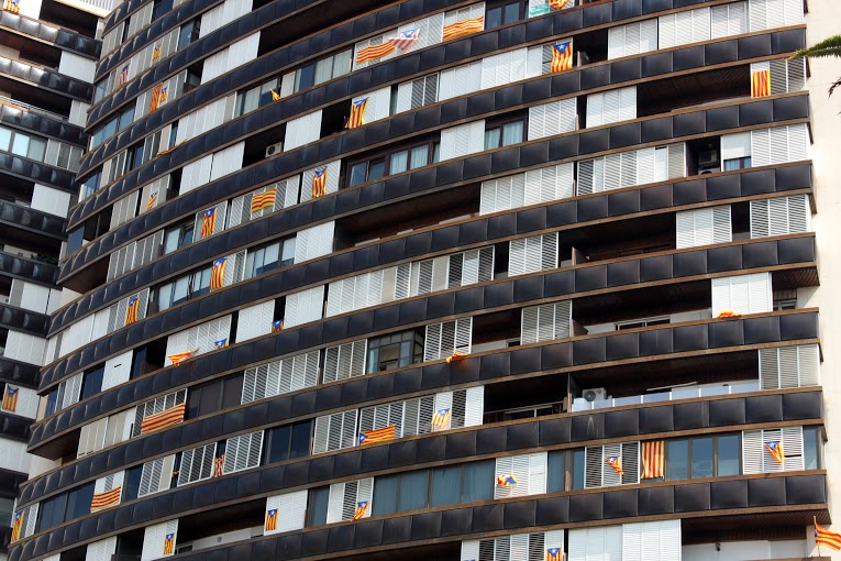 Busqué el bicing más cercano para bajar hacia el centro de la ciudad pero no había ninguna bicicleta disponible. Caminé unos diez minutos más hasta la próxima estación y entonces sí, ya montada en la bicicleta bajé con sentido a la Avinguda Meridiana. Una amplía vialidad que no se compara con la mayoría de las calles estrechas de la ciudad y que de pronto, me dejó ver poco a poco y cada vez más, la fuerza de dos colores que vestían a casi todo el que circulaba por las calles. Grupos de amigos y de familias completas vestidos de amarillo o de rojo o de los dos.