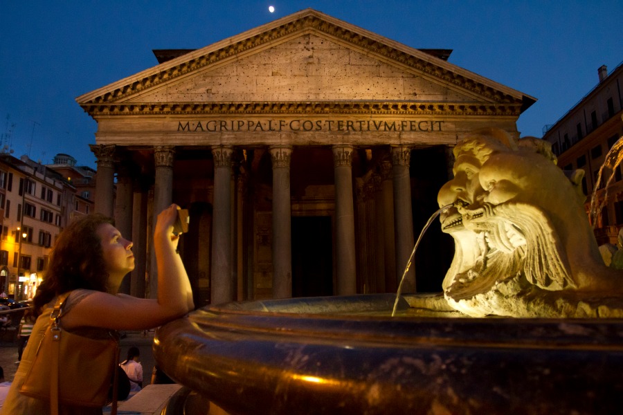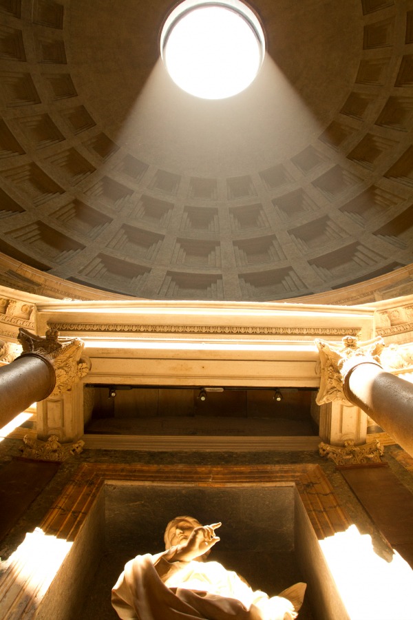 Claro que las deidades tenían su propio templo en Campo de Marte, el Panteón de Agripa, un recinto construido por primera vez por Marco Vipsanio Agripa, general romano y yerno del emperador Augusto, durante los años 27 y 25 antes de Cristo. Al entrar en él, se descubre una amplia sala redonda, mezclada con un pórtico clásico con dirección al Foro, cubierto por una bóveda, utilizada por la misma época en las grandes salas termales, una novedad en los templos de entonces. Aunque el calor que se vive hoy es similar, debido al aforo de personas, un par de giros rápidos son suficientes para observar los monumentos y rayos de luz característicos que entran al domo casi indicando a dónde mirar.